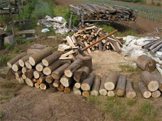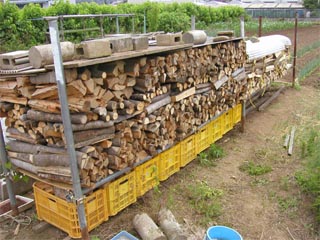 〜 2003年の春 〜 今度の冬に薪ストーブ購入計画があるので、その準備です。 薪は割ったあと約1年間は乾燥させなければいけません。 ゴールデンウィークから始めたので、ちょっと遅いけど・・・。